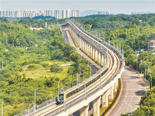 6月28日,地鐵列車行駛在長株潭城軌西環線上。湖南日報全媒體記者 郭立亮 攝