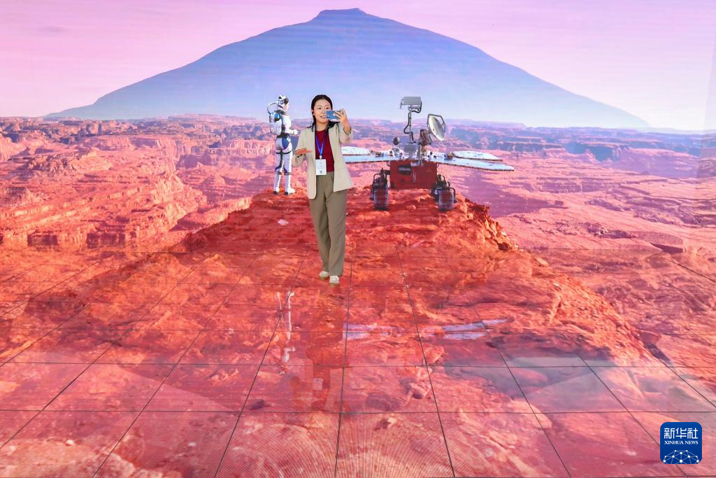 7月12日,參觀者在中國新媒體技術展上進行航天元宇宙沉浸式體驗。新華社記者 陳澤國 攝