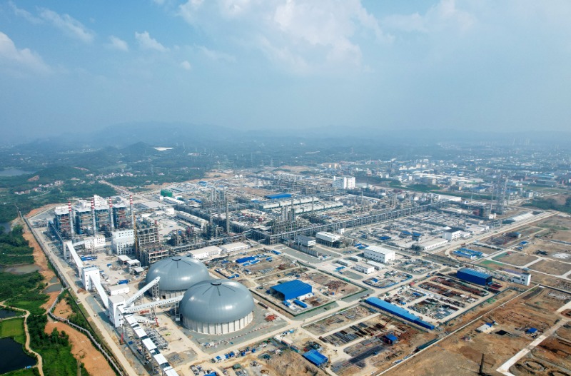 這是正在建設的巴陵石化己內酰胺項目(無人機照片)。(彭展 攝)