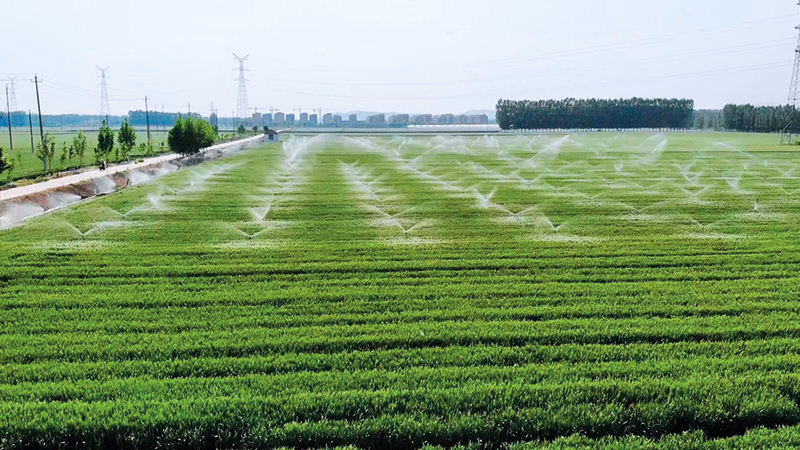 山東省肥城市安駕莊鎮一排排“地埋”式噴灌設備正在進行澆水作業(2024年3月24日攝) 受訪單位供圖