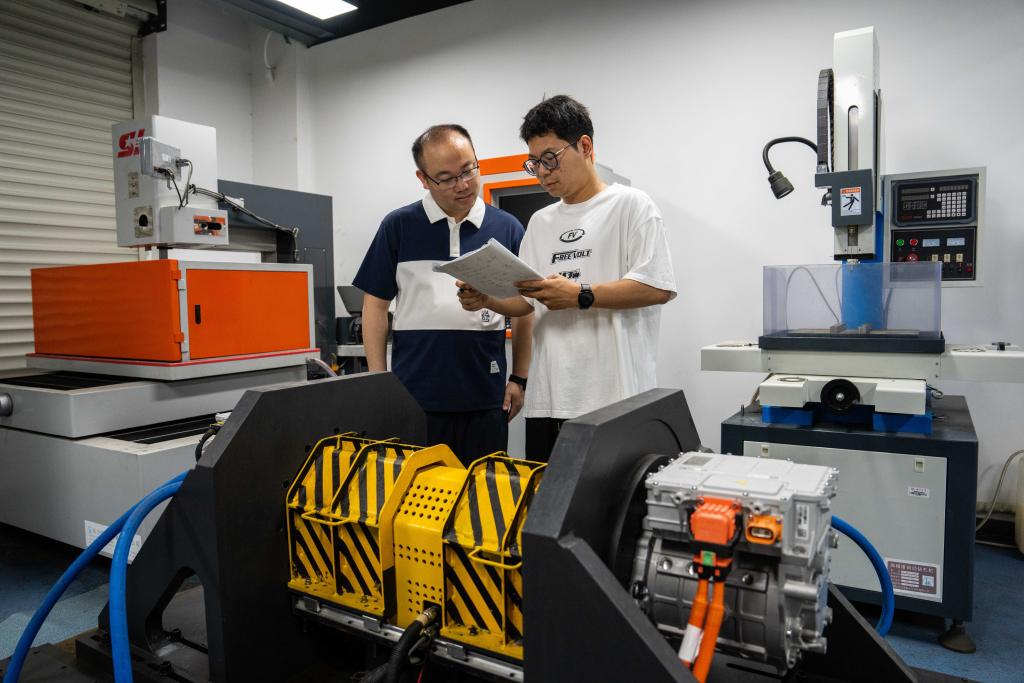 在湖南大學智能運載系統創新中心三電性能測試實驗室,邵海東和團隊成員正在對一款即將上市的新能源汽車驅動電機進行健康管理測試。