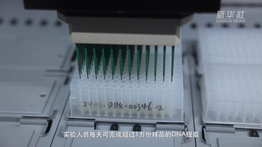 在湖南長沙的岳麓山種業創新中心,分子育種實驗室研究員李樂正在把脫殼的水稻種子放進樣品盤里,隨后將樣品放置在全自動移液工作站上,進行樣品DNA的提取。