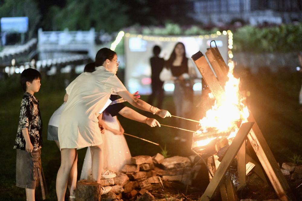 游客在寧??h桑洲鎮高山露營基地度過端午假期。(尤才彬 攝)
