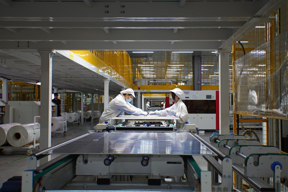 自動焊接、自動敷設、AGV小車自動“運”貨……走進滁州隆基樂葉光伏科技有限公司生產車間,一條自動化單晶組件制造生產線正高效運轉中。