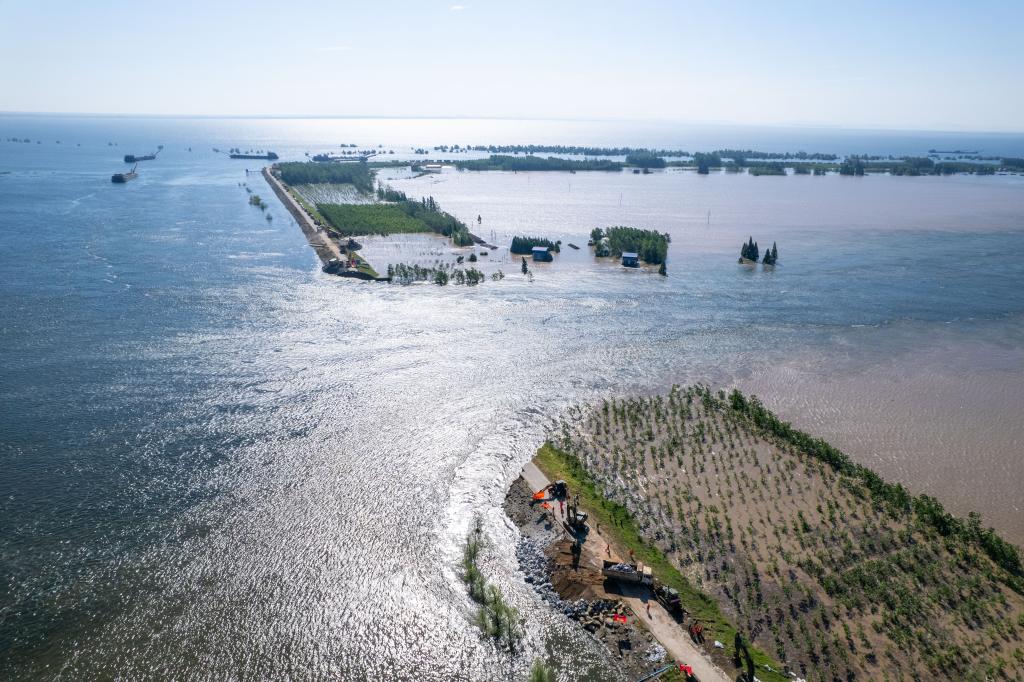 7月6日,在湖南省岳陽市華容縣團洲垸拍攝的洞庭湖大堤決口現場。新華社記者 陳思汗 攝