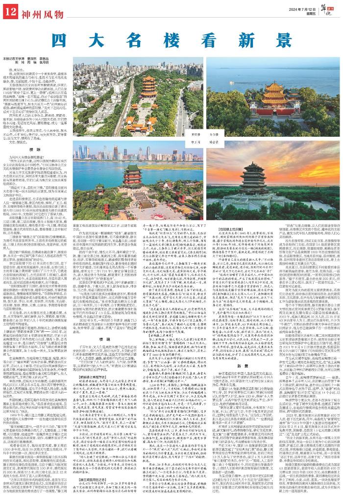 河南大學文化旅游學院教授程遂營認為,四大名樓見證歷史,同時還有大量詩詞歌賦、歷史典故與其緊密相連,它們已成當地歷史文脈的重要組成部分。