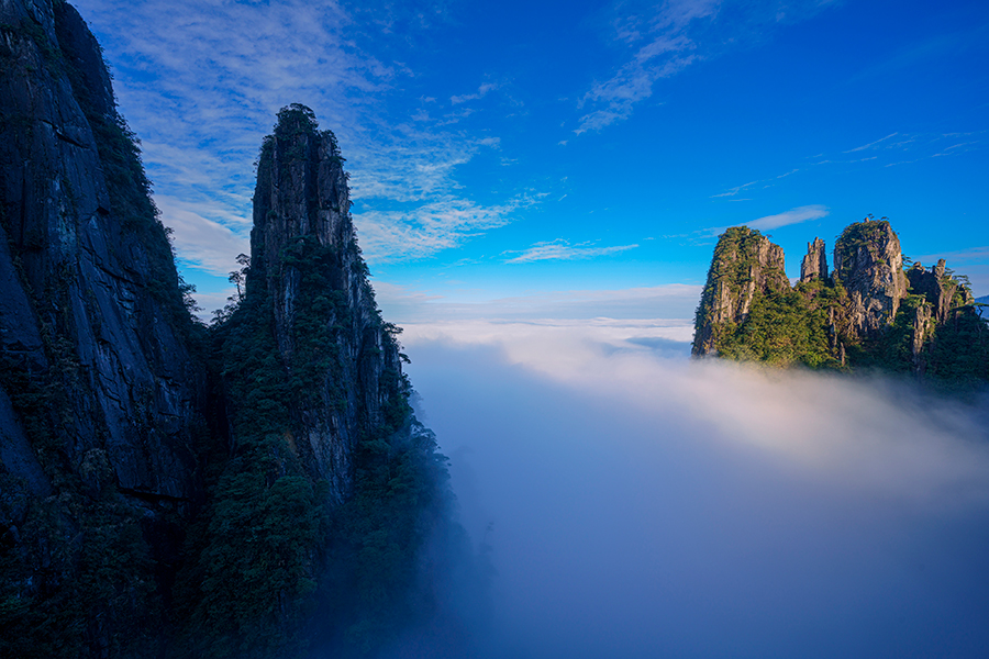 莽山五指峰景區地處湖南省宜章縣溶家洞,擁有奇松、怪石、云海、霧凇、杜鵑、溫泉等自然景觀,建有云間棧道、懸空索道、垂直電梯、提升機等無障礙設施。2020年10月,中國旅游景區協會和中國肢殘人協會分別授予其“全國首家無障礙山岳型旅游景區”“全國首家無障礙山岳型景區”。新華網發 鄧加亮攝