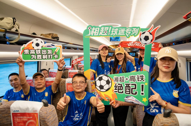 9月27日,2025湖南省足球聯賽(“湘超”聯賽)迎來岳陽隊客場對陣衡陽隊。下午4點15分,G6171次載著300余名岳陽球迷從岳陽東站緩緩駛出,前往衡陽觀看賽事,賽后他們還將集體搭乘G9622次“球迷專列”返回岳陽。據悉,這是長沙南站首次為“湘超”聯賽定制開行的球迷專列,旨在讓球迷出行更便捷、看球更舒暢。