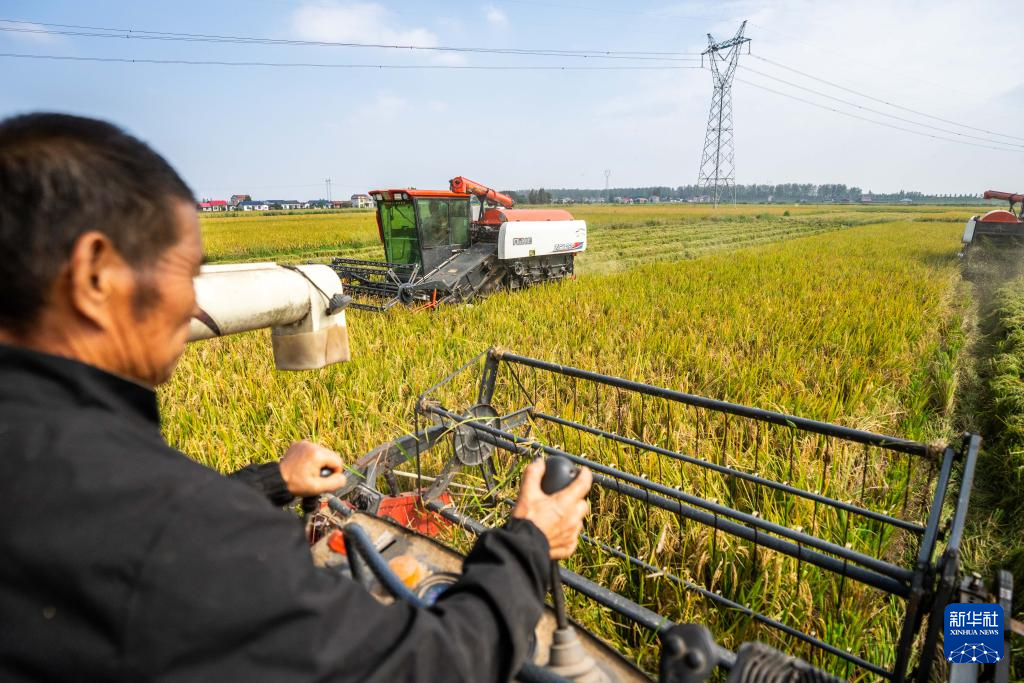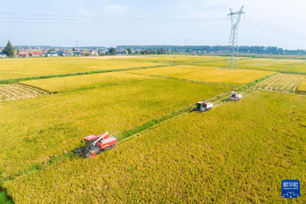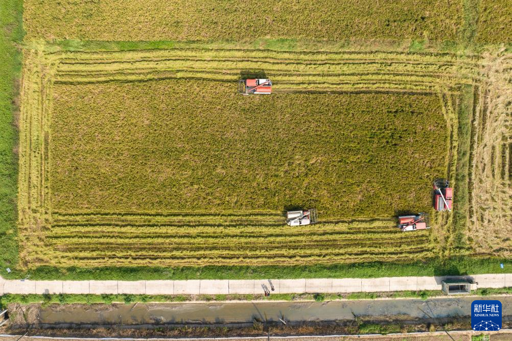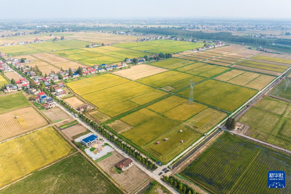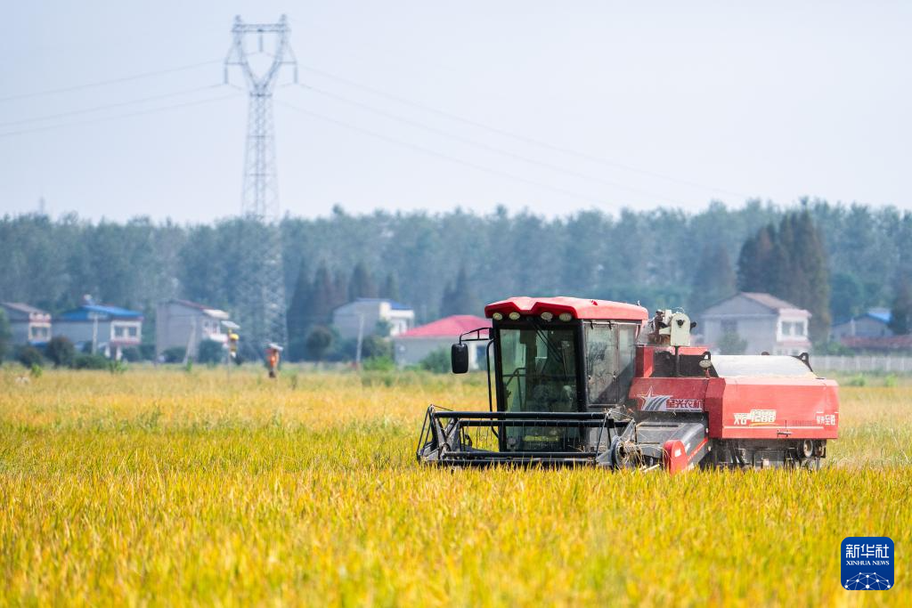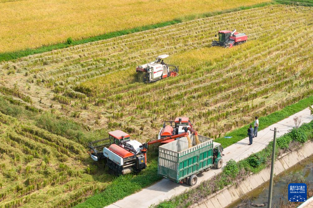 近日,位于洞庭湖腹地的湖南省益陽市南縣60余萬畝中晚稻陸續成熟進入收割期,當地農民搶抓晴好天氣,操作機械設備進行收割,田間地頭一派豐收景象。