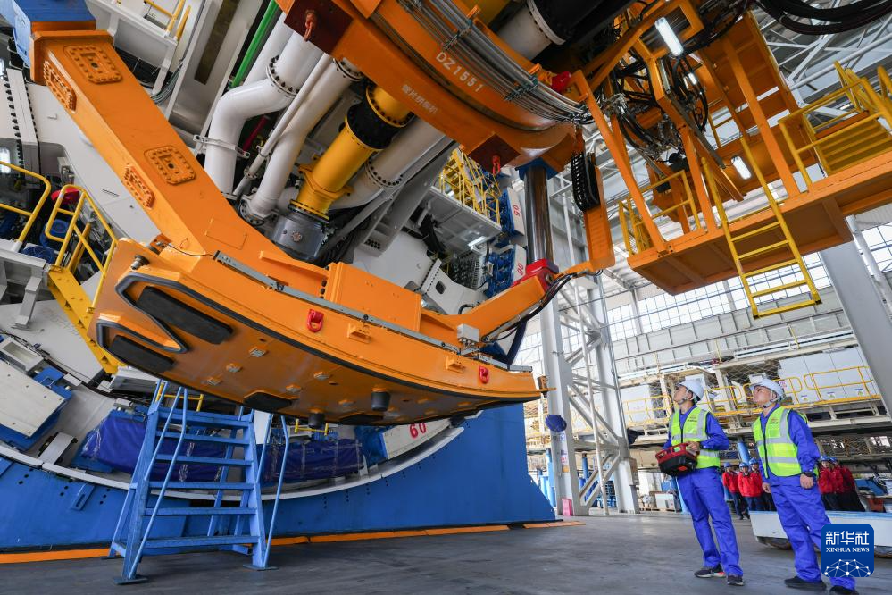 10月24日在鐵建重工長沙第一產業園拍攝的“龍崗二號”盾構機。新華社記者 陳澤國 攝
