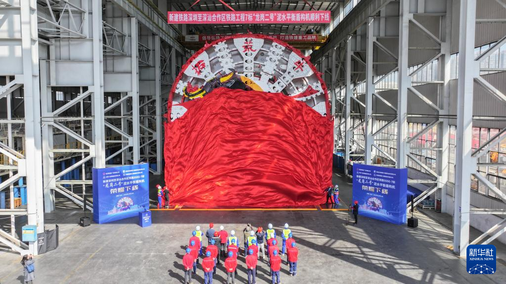 10月24日,“龍崗二號”盾構機在鐵建重工長沙第一產業園下線(無人機照片)。新華社記者 陳澤國 攝pagebreak