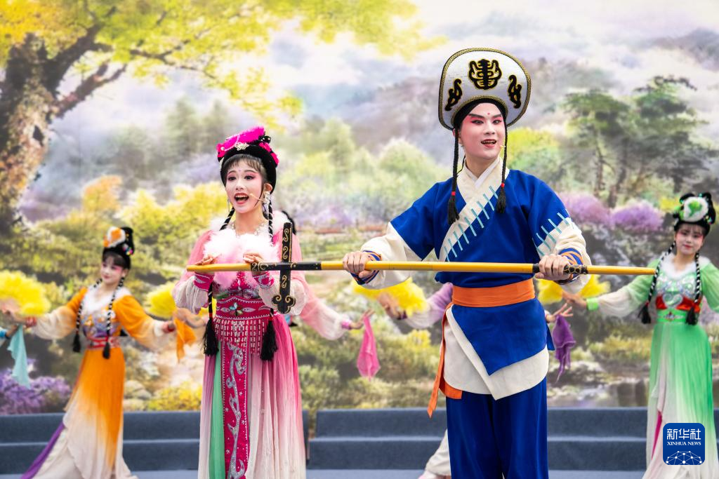 10月29日,在長沙市開福區東風路街道東風大舞臺,湖南藝術職業學院學生為市民表演戲曲《劉??抽浴?。新華社記者 陳思汗 攝pagebreak