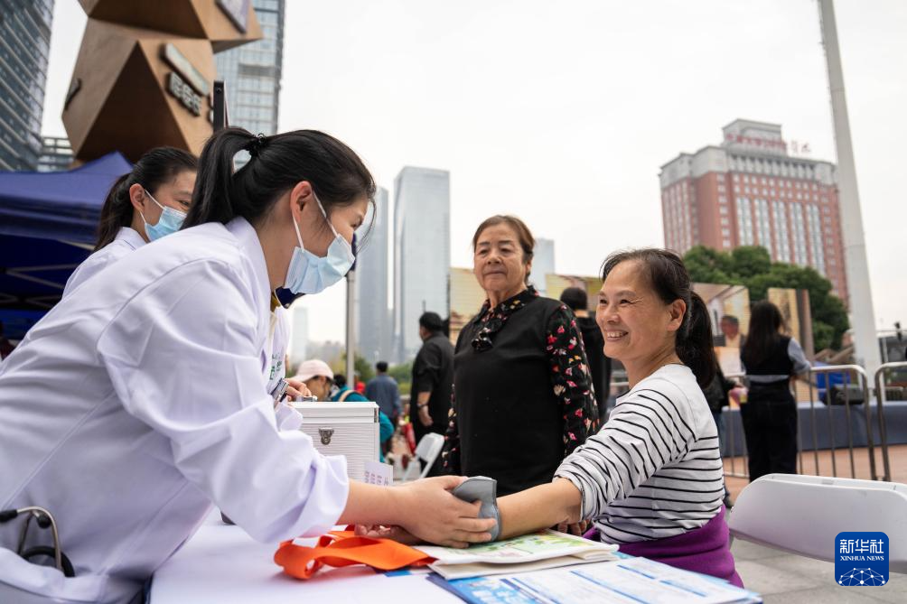10月29日,在長沙市開福區東風路街道東風大舞臺旁,市民參加義診活動。新華社記者 陳思汗 攝pagebreak